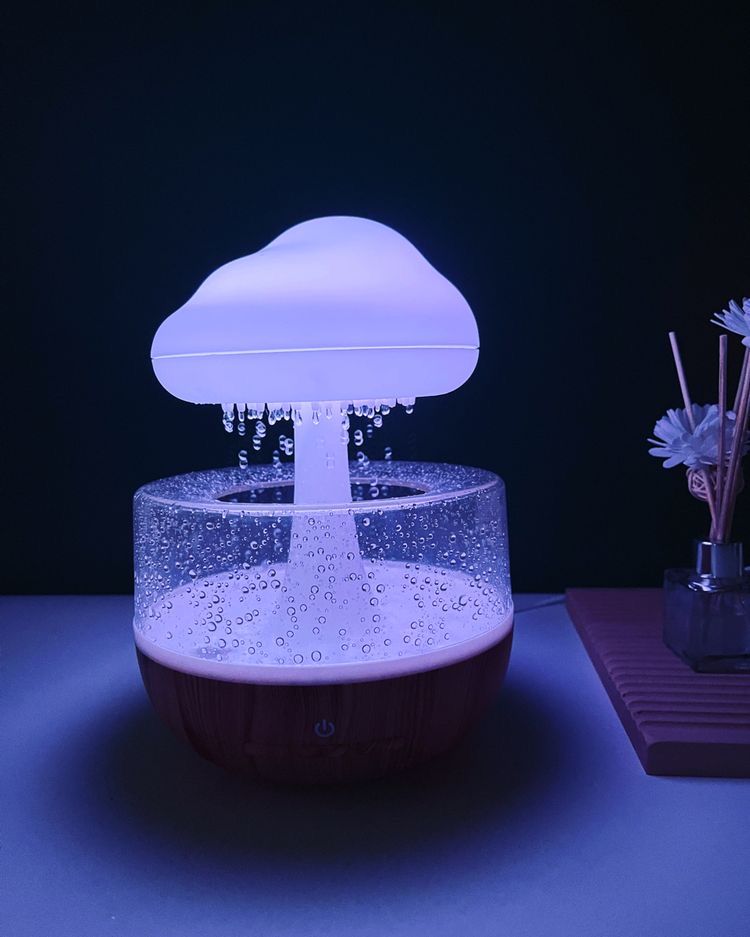 Rain Cloud Humidifier Rain Colorful Mushroom Cloud Raindrop Atmosphere Lamp Night Light Essential Oil Small Aromatherapy Machine